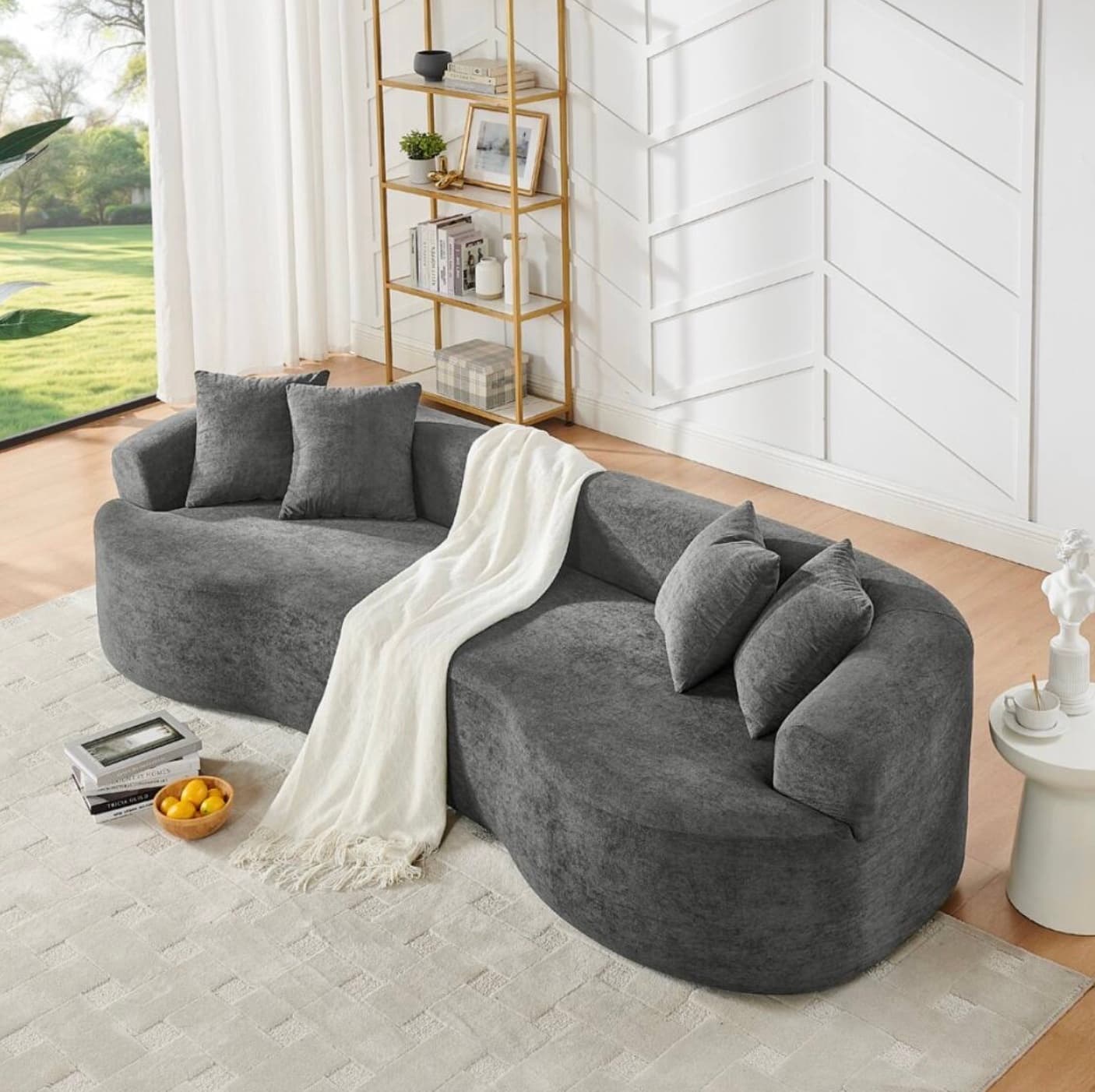 Curved sofas, sculptural accent chairs, organic-shaped tables, textured upholstery, and statement lighting are among the most popular furniture trends.