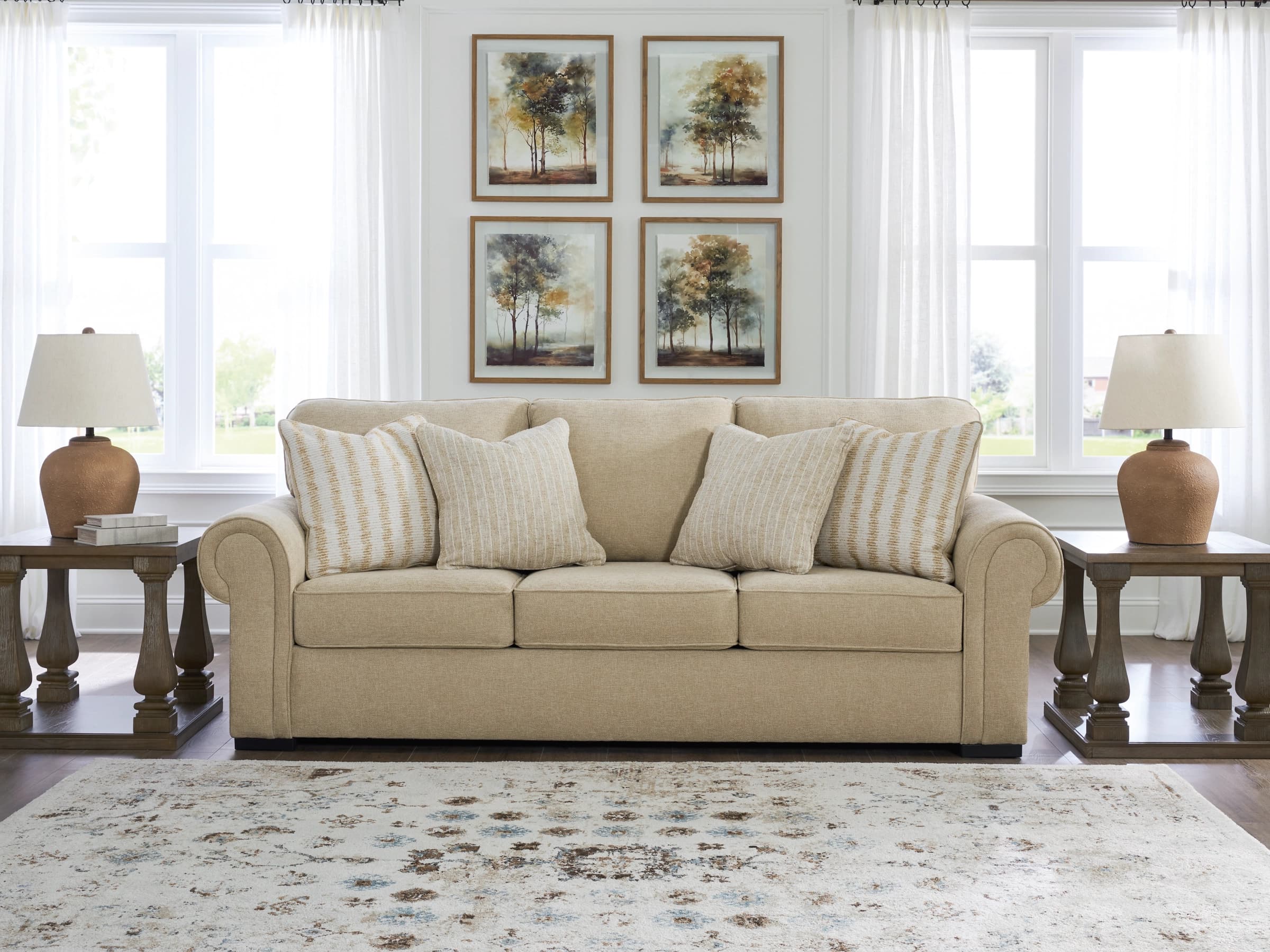 Consider the Lerason Sofa – $599. Upholstered in a versatile gray fabric, it is structured enough to look modern yet soft enough to feel inviting. The flared arms add subtle design interest. At under $600, it leaves space in your budget for other essentials.